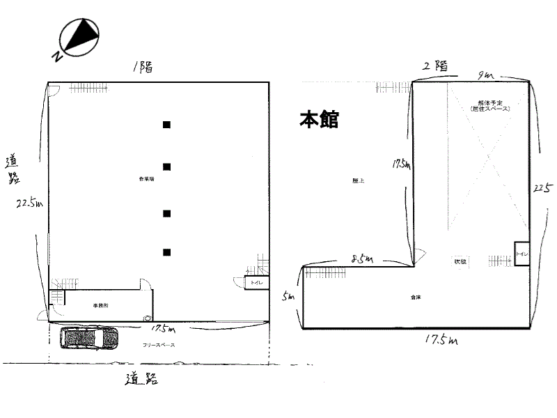 | その他 | *天井高(本館)1階:4.3m(梁まで4.0m) 2階:3.2m(梁まで2.9m) *現在賃貸中令和8年3月末日退去予定※引き渡し時期、要相談になります。 *内覧は賃貸中のため、ご相談になります。 *賃貸保証会社要※賃料等1ヶ月相当(更新料有) *借家人賠償保険要※業種によって金額異なる *個人のため、インボイス登録はしておりません。 ※図面は概略図ですので、実際とは異なる場合があります。 | |