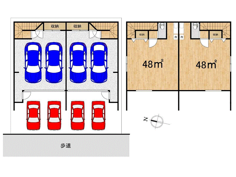 | その他 | *短期違約金1年以内…2ヶ月、2年以内…1ヶ月 *保証会社・火災保険要加入 *車の駐車台数は車種による。 *完成前に付き、写真はイメージです。 *左・右は別部屋です。 *インターネット設備工事は借主様負担 *図面と現況が異なる場合は現況を優先。 | |
