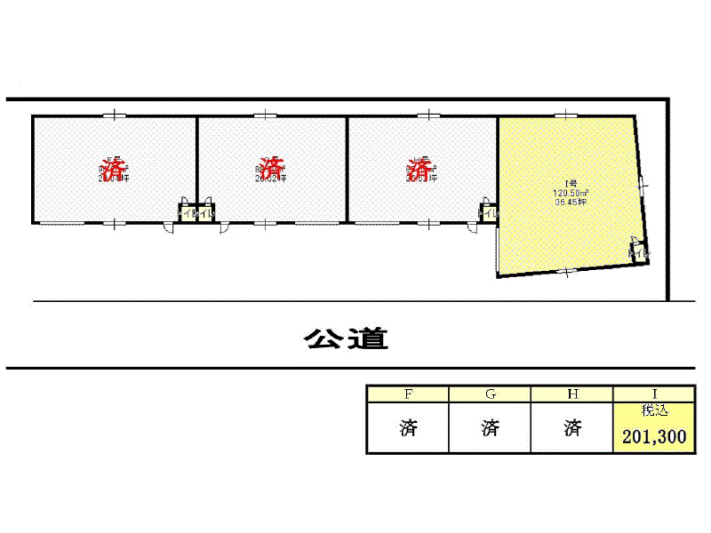 | 倉庫 | 幹線道路沿いの平家建倉庫。駐車場1台付、工業地域で幅広い用途に対応。 | |