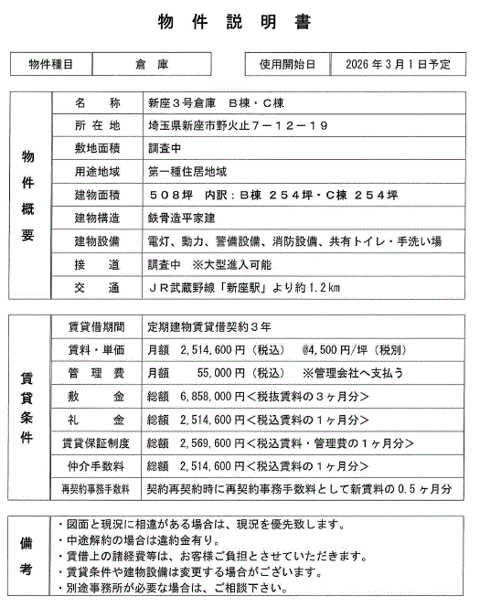 | 沿線/駅 | 武蔵野線/新座駅 徒歩15分 |