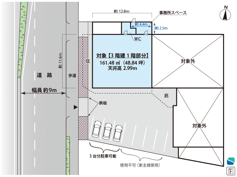 | 構造/階数 | 鉄骨造/3階建ての1階部分 | |