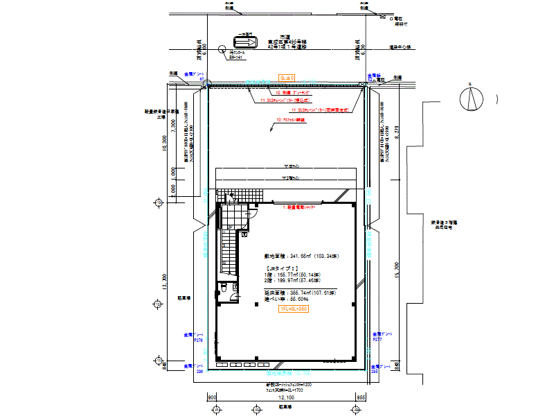 建物面積:355.74m²/107.6坪 敷地面積:341.65m²/103.3坪 |