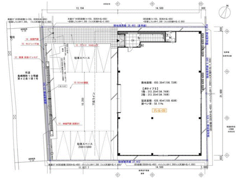 建物面積:626.4m²/189.5坪 敷地面積:650.38m²/196.7坪 |