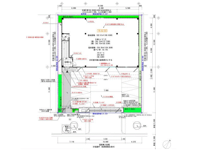 建物面積:526.5m²/159.3坪 敷地面積:531m²/160.6坪 |