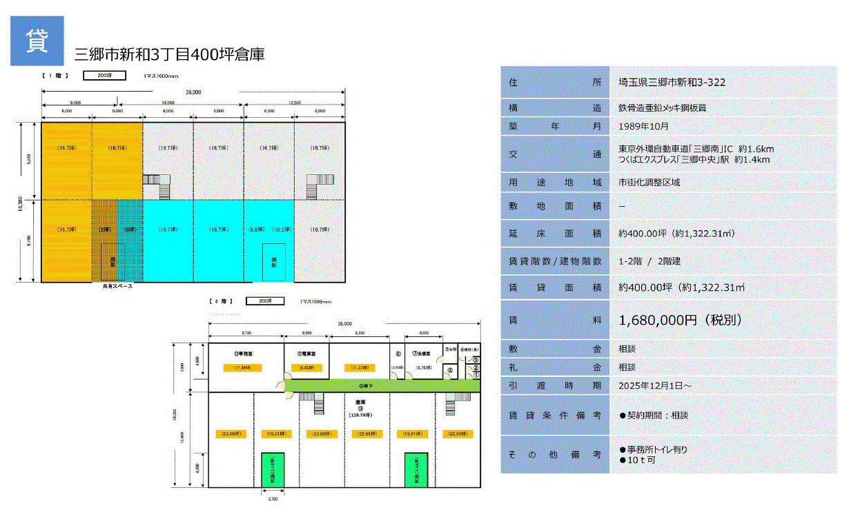 | その他 | *200坪の平家建倉庫に中2階を設置しています |